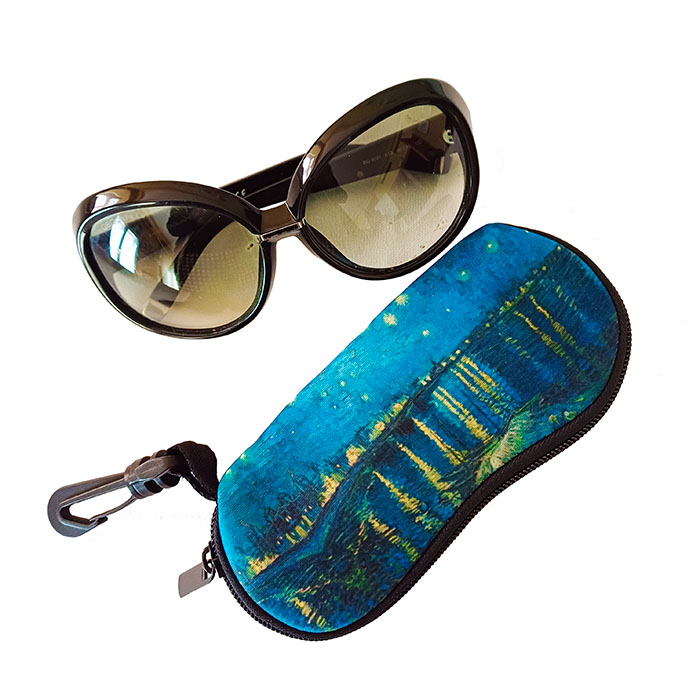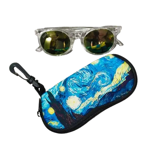 Imagina tener tus gafas siempre a salvo, protegidas de rayones, polvo y golpes, sin renunciar a un toque de elegancia. Con nuestras fundas, podrás llevar tus gafas contigo a cualquier lugar sin preocuparte por dañarlas. De tela acolchada y cremallera, con motivos de conocidas obras de arte, de los mejores pintores de la historia, como Van Gogh, Picasso, Klimt, Candinsky, Monet, y muchos más.
