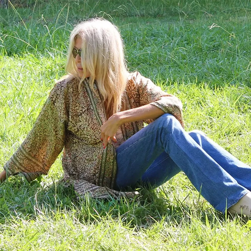 Lo puedes llevar con jeans y una camiseta blanca para un estilo relajado, sobre un vestido ajustado para eventos, como bata de seda en casa o incluso como abrigo liviano con botas en los días más frescos. Su estructura favorece todo tipo de siluetas y aporta un aire libre, artístico y muy femenino.
