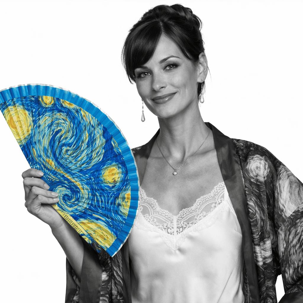 Nuestros abanicos de Van Gogh destacan por un acabado esmaltado de alta resistencia. Este proceso permite reproducir con total nitidez el colorido intenso y la textura visual de las obras del genio neerlandés. Es un accesorio funcional con varillas robustas, diseñado tanto para el uso diario en tu bolso como para ser una pieza de colección para los amantes del arte.