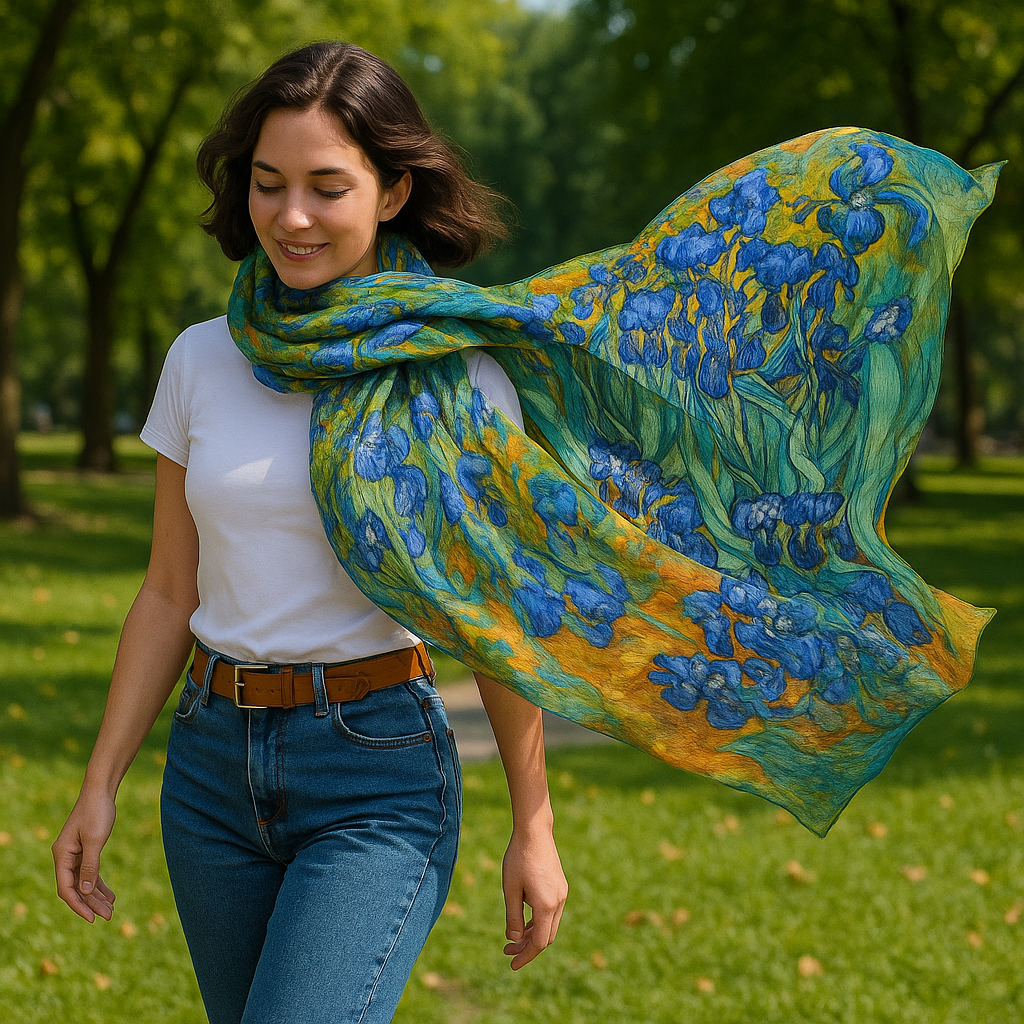 Elige y regala Fular de semiseda reversible doble cara Van Gogh y Klimt de Julunggul