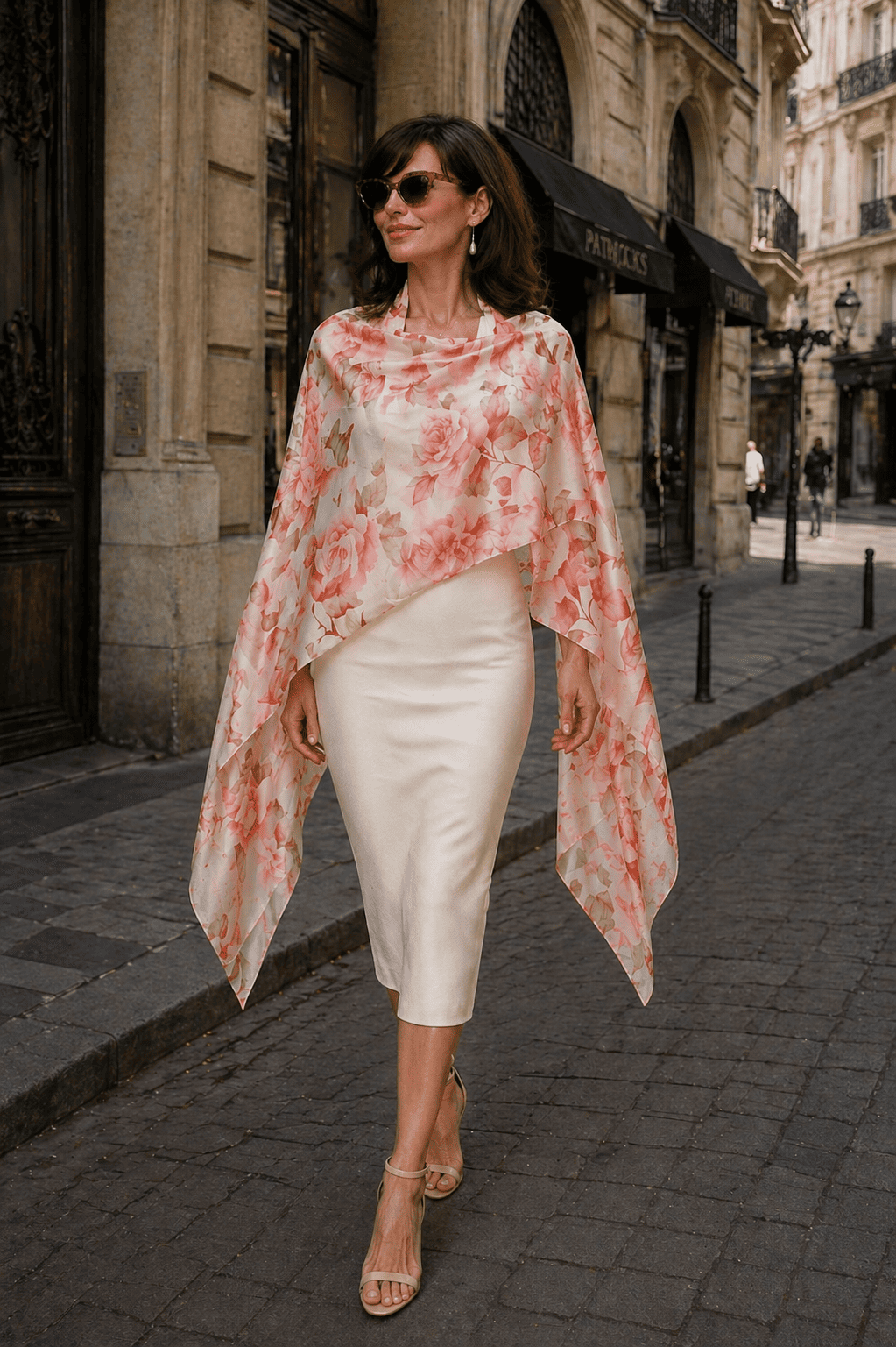 Como Chal o Echarpe: La opción ideal para bodas, comuniones o eventos de día, aportando frescura sobre los hombros.
