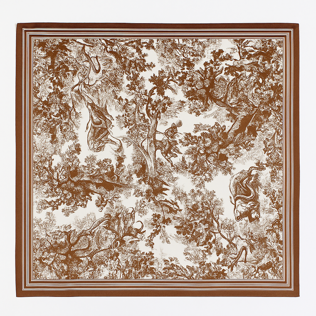Pañuelo de seda de mujer Estampado blanco y marrón